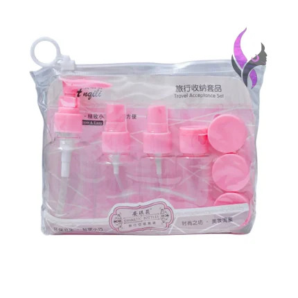 •ست 7 تکه شامل: 2 عدد اسپری، 2 عدد بطری، 2 عدد ظرف در‌ دار کوچک و 1عدد بطری پمپی و یک کاردک •مناسب نگهداری شامپو، نرم کننده، صابون بدن، لوسیون، کرم و سایر لوازم آرایشی شخصی •قابل استفاده در سفر، کمپینگ، استخر، باشگاه ورزشی •بسیار شیک و زیبا •کاردک برای برداشتن کرم •رنگ بندی به صورت رندوم می‌باشد
