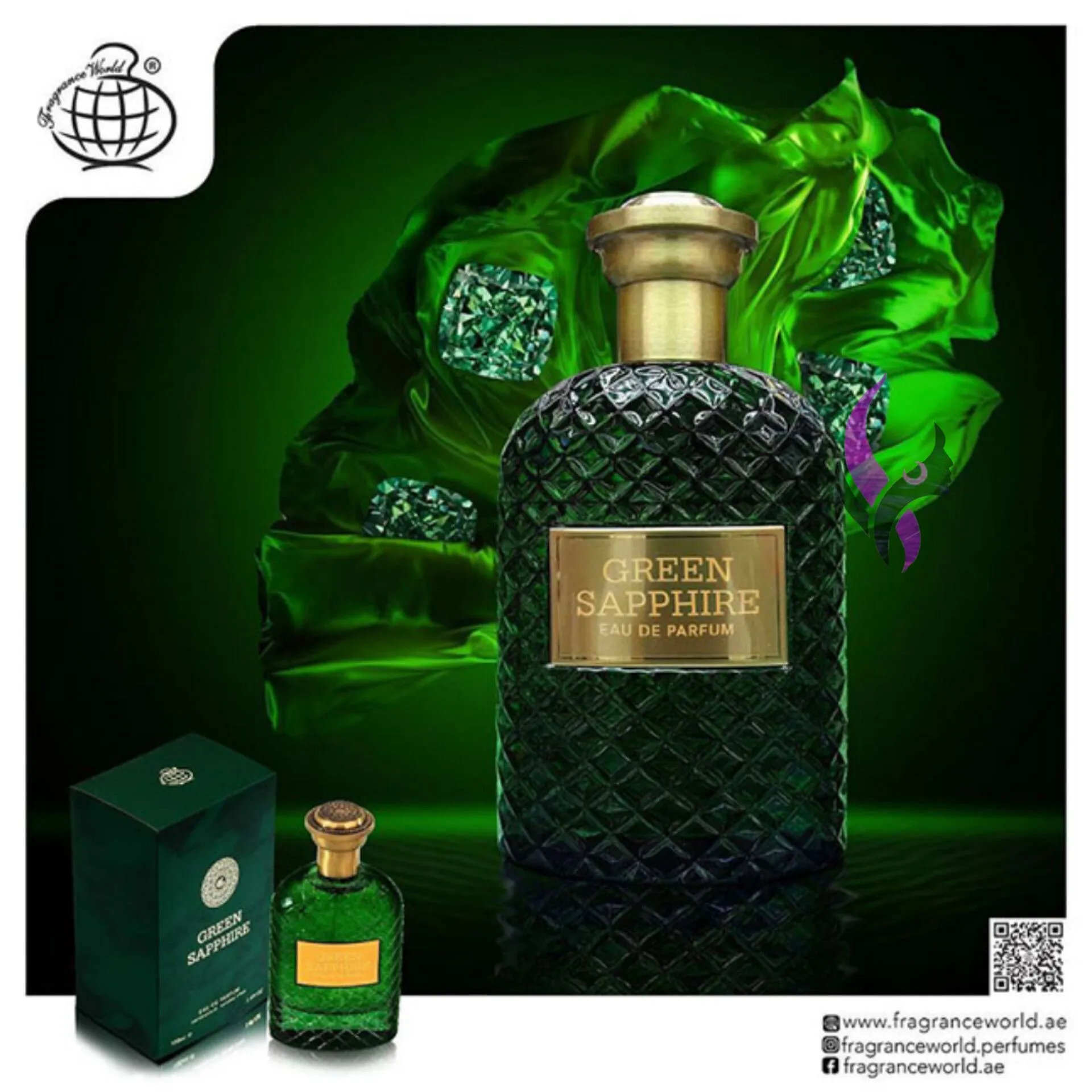 عطر ادکلن گرین سافیر GREEN SAPPHIRE فراگرنس ورد عطری مردانه و محبوب با رایحه ای معتدل و چوبی است و مشابه ادکلن معروف بودیسیا ویکتوریوس گرین سفیر می باشد. این عطر را می توان در گروه بویایی چوبی شرقی طبقه بندی کرد. ادکلن گرین سافیر بسیار سنگین، تاریک ، لوکس و خاص طراحی شده که برای استفاده در مهمانیها و مجالس رسمی به آقایان شیک پوش پیشنهاد می شود