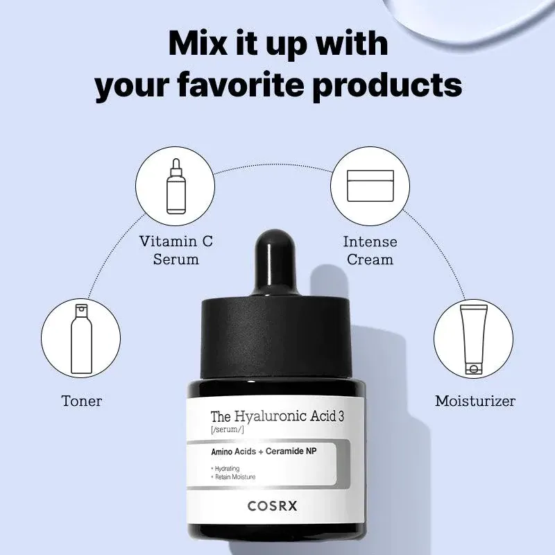 هیالورونیک اسید ماده ای طبیعی است که به طور طبیعی در پوست یافت می شود. این ماده به دلیل توانایی فوق العاده خود در جذب و حفظ رطوبت شناخته شده است. سرم آبرسان هیالورونیک اسید 3% کوزارکس از هیالورونیک اسید با وزن مولکولی های مختلف استفاده می کند که به آن اجازه می دهد تا به لایه های مختلف پوست نفوذ کرده و رطوبت را در تمام سطوح حفظ کند.
