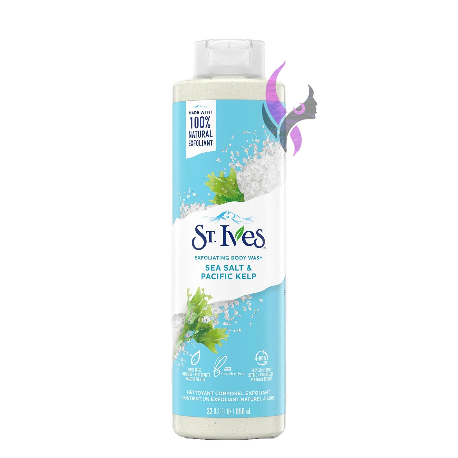 شامپو بدن جلبک و نمک دریایی سینت ایوز St Ives Purifying تهیه شده از عصاره های کاملا طبیعی بوده و حاوی نمک دریایی خالص و عصاره جلبک دریایی اقیانوس آرام است. جلبک دریایی اقیانوس آرام سرشار از آنتی اکسیدان است و دارای خواص آبرسانی و نرم کنندگی پوست می باشد، علاوه بر این نمک دریایی و پودر پوست گردو نیز به عنوان پاک کننده و لایه بردار طبیعی و ملایم سلول های مرده پوست عمل می کنند، نتیجه آن پوستی شفاف، نرم، تمیز و شاداب می باشد.