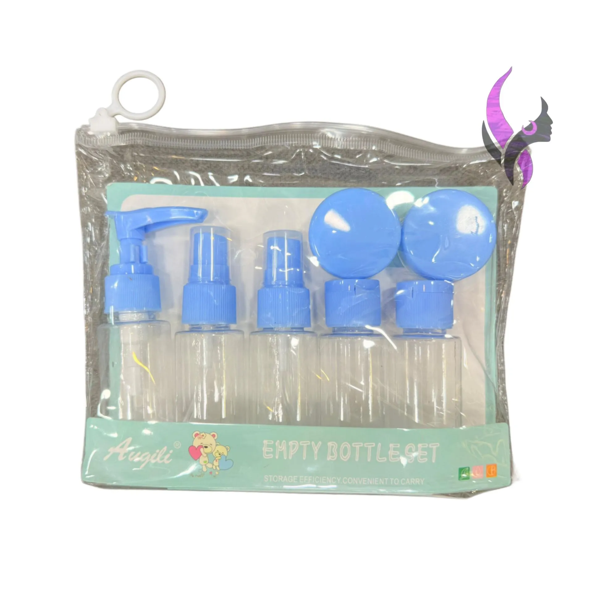 •ست 7 تکه شامل: 2 عدد اسپری، 2 عدد بطری، 2 عدد ظرف در دار کوچک و 1عدد بطری پمپی و یک کاردک