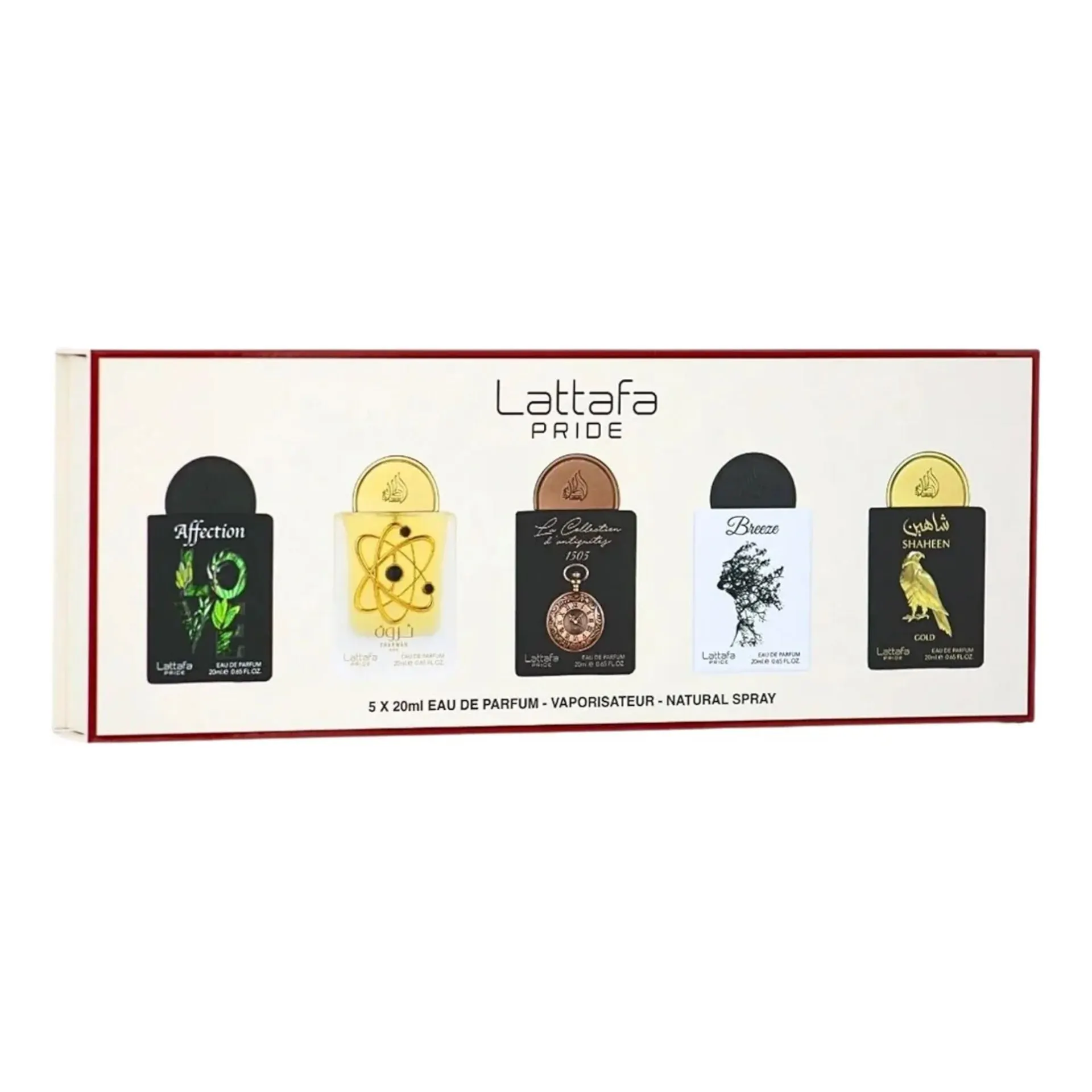 این جعبه شیک شامل پنج ادکلن منحصر به فرد درحجم ۲۰ میلیلیتری است که یک گزینهی عالی برای هدیه دادن و سفر است.