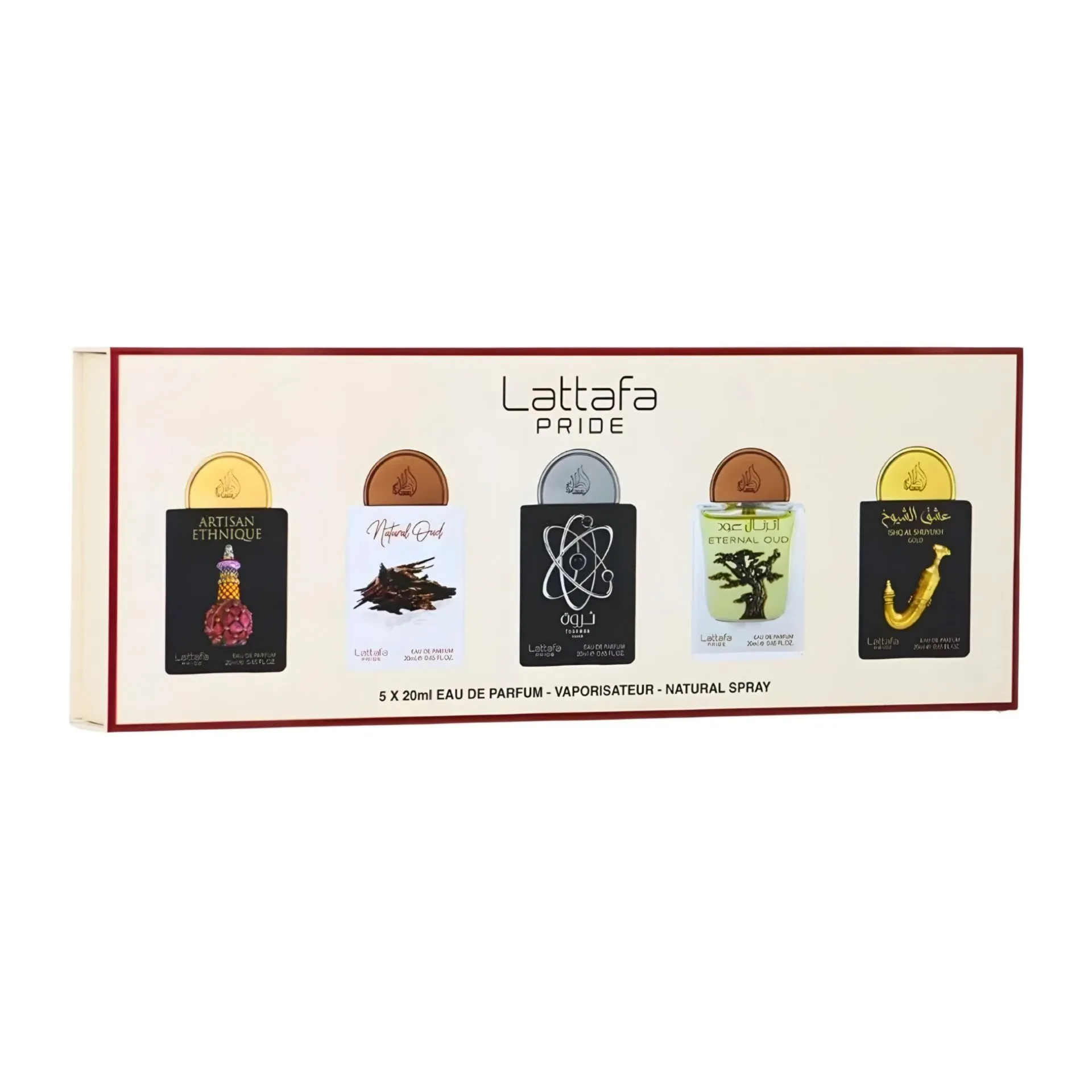 این جعبه شیک شامل پنج ادکلن منحصر به فرد درحجم ۲۰ میلیلیتری است که یک گزینهی عالی برای هدیه دادن و سفر است.