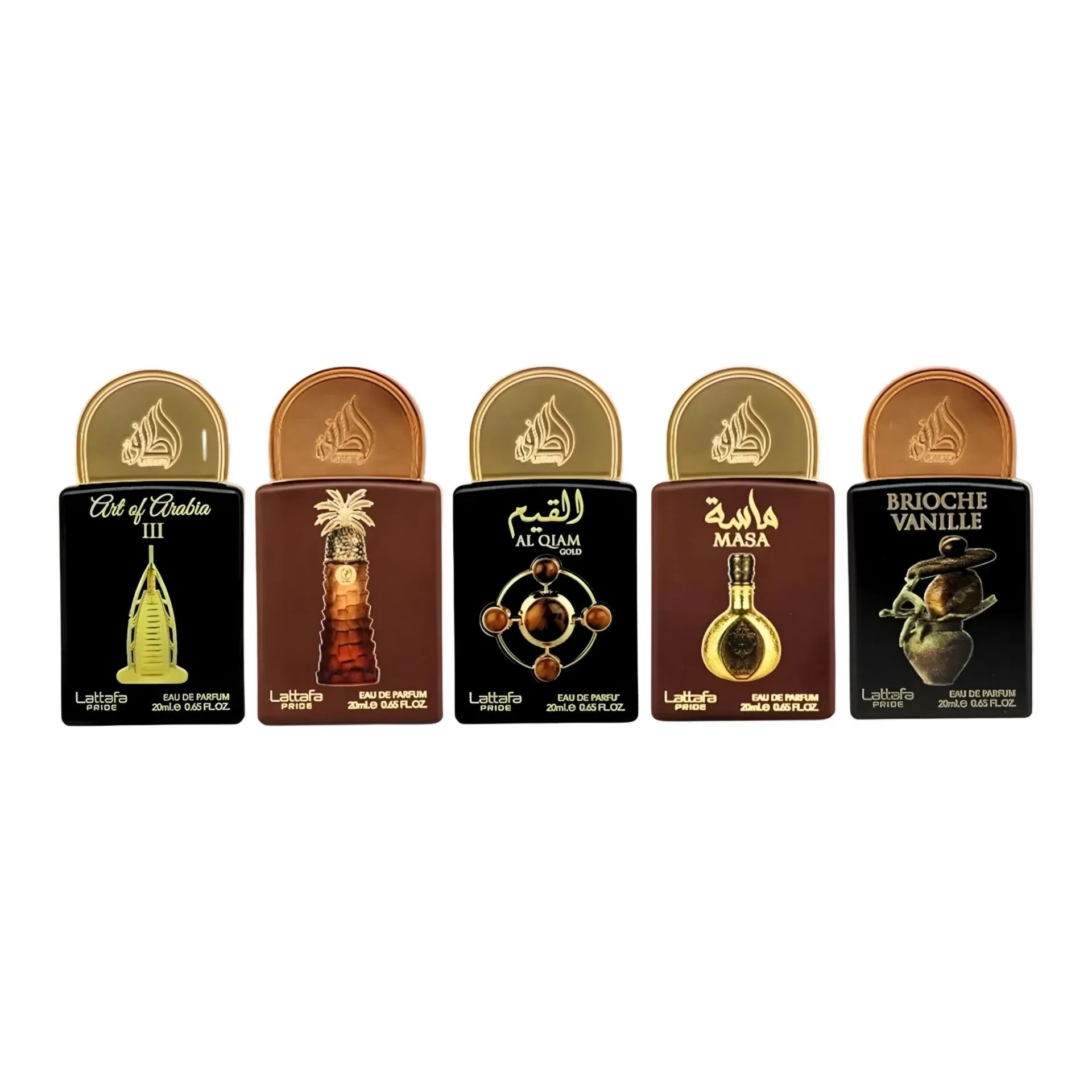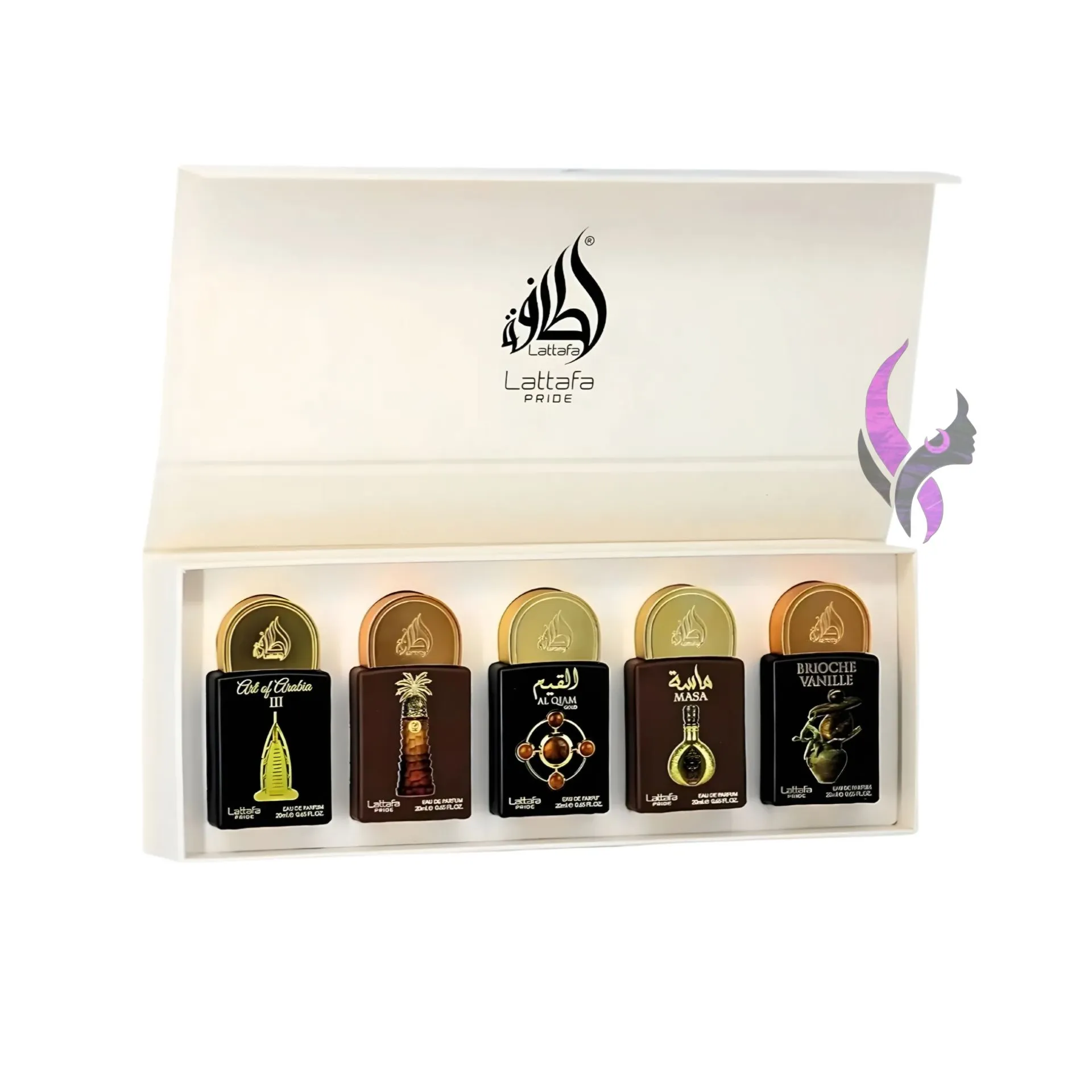 این جعبه شیک شامل پنج ادکلن منحصر به فرد درحجم ۲۰ میلیلیتری است که یک گزینهی عالی برای هدیه دادن و سفر است.